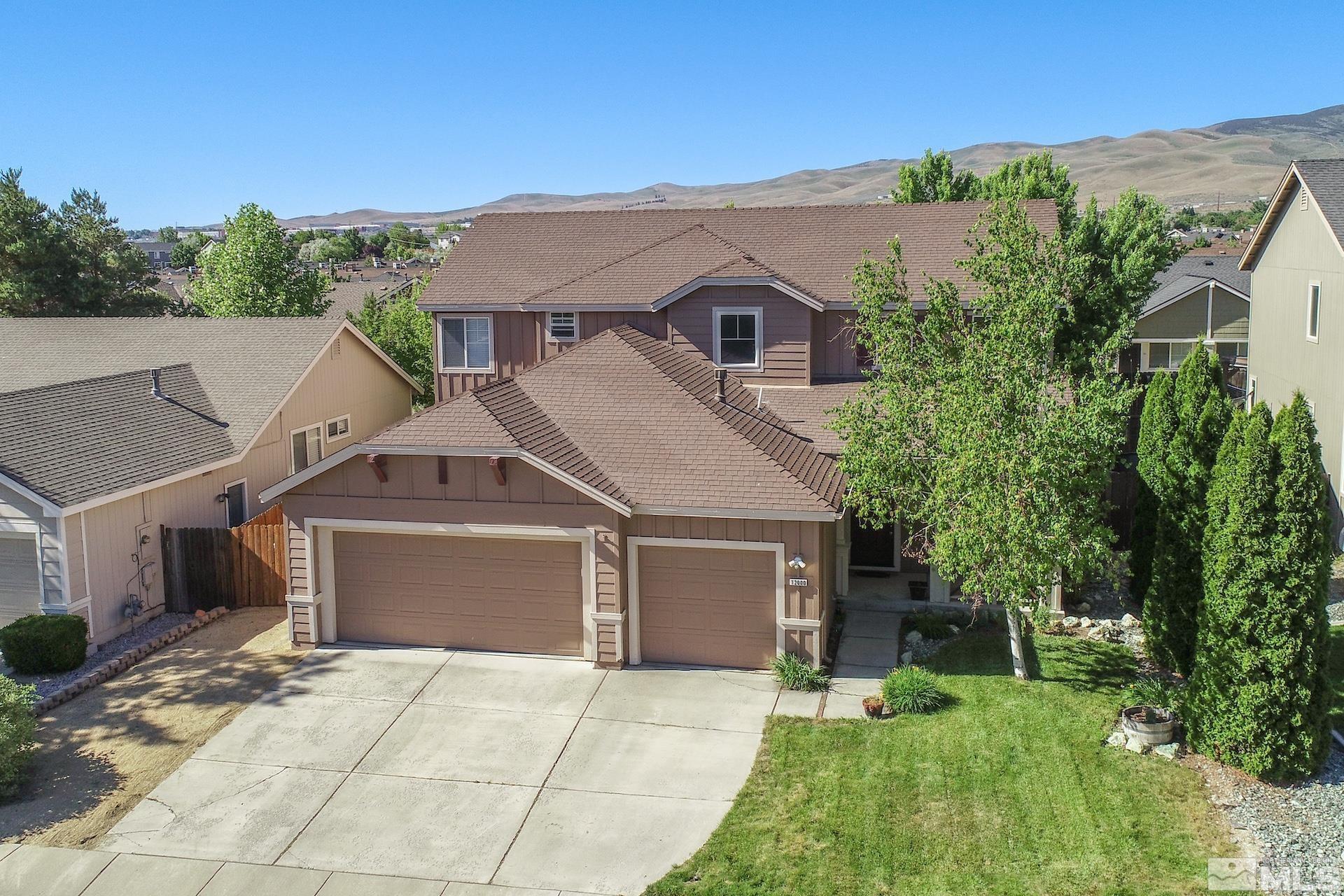 Welcome to your new home located in the lovely Sky Vista Community. This spacious home features 3 bedrooms and 3 bathrooms, a downstairs office, a large 3 car garage, and a cozy yard with mature trees and spacious patio. 12000 Camel Rock's convenient location off Lear Blvd. makes for an easy jaunt to the freeway and nearby shopping. You'll find bang for your buck in this charming north Reno home., 12000 Camel Rock sits in the middle of a quiet and winding street, ideally situated away from the busy boulevard below. The large driveway provides plenty of space in front of the 3 car garage, not to mention the abundant street parking across the way. Step inside and you'll be impressed with 2 story formal living and dining rooms that flow nicely into the cutely painted kitchen. The oversized sink makes the chore of dishwashing easy, especially since you'll enjoy a view of the lush yard while you're at it. The adjacent family room provides a nice place to relax and watch TV. You'll find the office, which could easily be converted to a bedroom, downstairs with its corresponding 3/4 bath nearby. Upstairs, you'll find all three bedrooms, including the large primary bedroom, with its dual vanity en-suite bathroom, with soaking tub and shower. Both the front and back yard are fully landscaped, surrounded by mature landscaping and greenery which make for a tranquil and inviting outdoor space. This house is perfect for homeowners and investors alike. Schedule a private tour today.